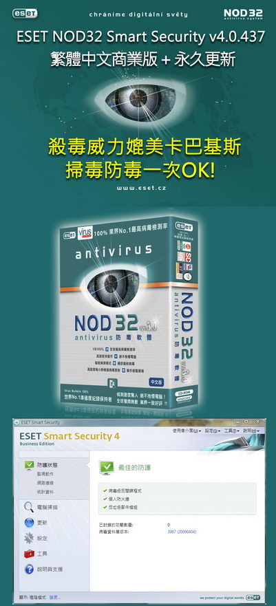 ESET NOD32 Smart Security v4.0.437 繁中商業版 + 永久更新 (掃毒防毒一次OK)