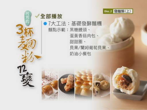 阿芳老師的廚房教室-3杯麵粉72變 第2集 (阿芳老師教你從3大麵類、7大工法出發輕鬆變出72道新鮮、健康、無人工添加的麵點)(DVD一片裝)